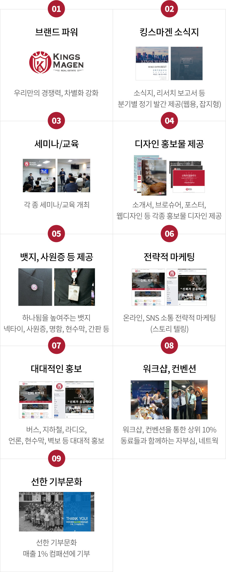 킹스마겐은 교육 및 지원으로 일반 부동산 소장이 아닌 멋진 회사의 당당한 CEO로 활동하실 수 있습니다.