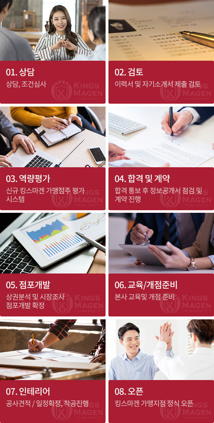킹스마겐은 다양한 부동산 교육과 처음부터 끝까지 본사 직속 직원으 도움으로 안전하게 운영할 수 있도록 도와드립니다.