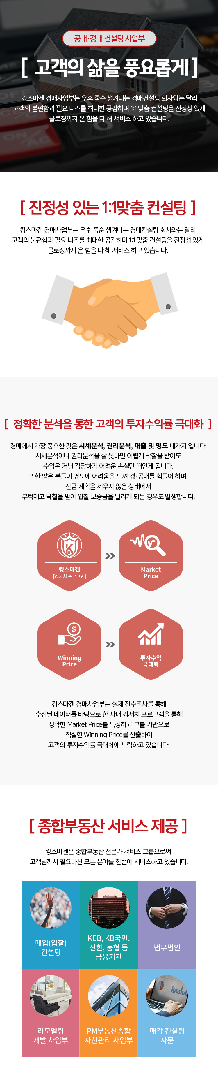 킹스마겐 경매사업부는 투자자들의 대리인으로서 역할에 책임감을 가지고 최선을 다할 것이며 고객 한 분 한 분의 가치를 존중하고, 킹스마겐을 통해
