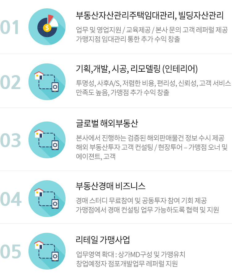 부동산 거래 고객이 공인중개사에게 원하는 것과 창업 공인중개사가 필요로 하는 것을 해결해 주는 가치를 제공함으로 저비용 고효율의 결과를 창출하여 소비자, 중개사, 회사, 국가 모두가 이득이 되는 비즈니스입니다.